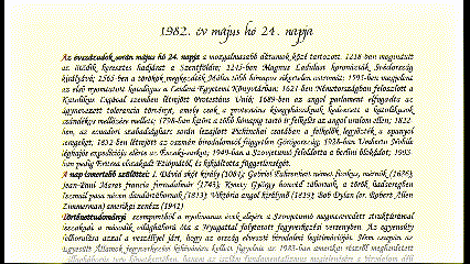 Az összeállítás ezen része segít eligazodni a történelem adott időszakában, áttekintést nyújt az adott esztendő világpolitikai és belpolitikai helyzetéről, e mellett érdekességként kitér az adott naptári napon történt eseményekre, és megemlíti a nap ismertebb szülötteit.